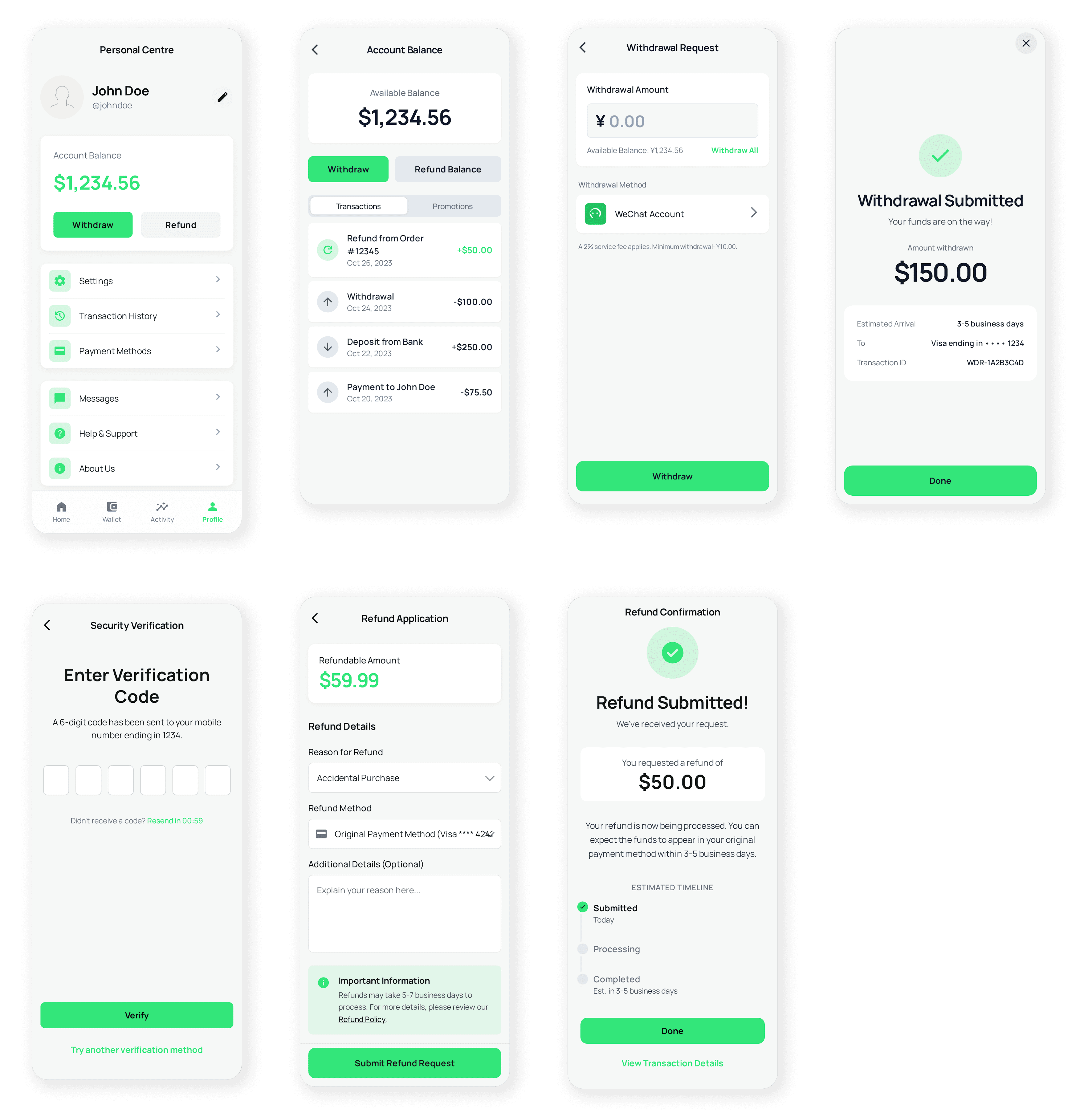 End-to-End Design Direction: Defined the complete user journey and mapped out the wireframes—covering the personal dashboard, withdrawal requests, and security verifications—overseeing visual designers to ensure the final UI clearly communicated complex backend operations.