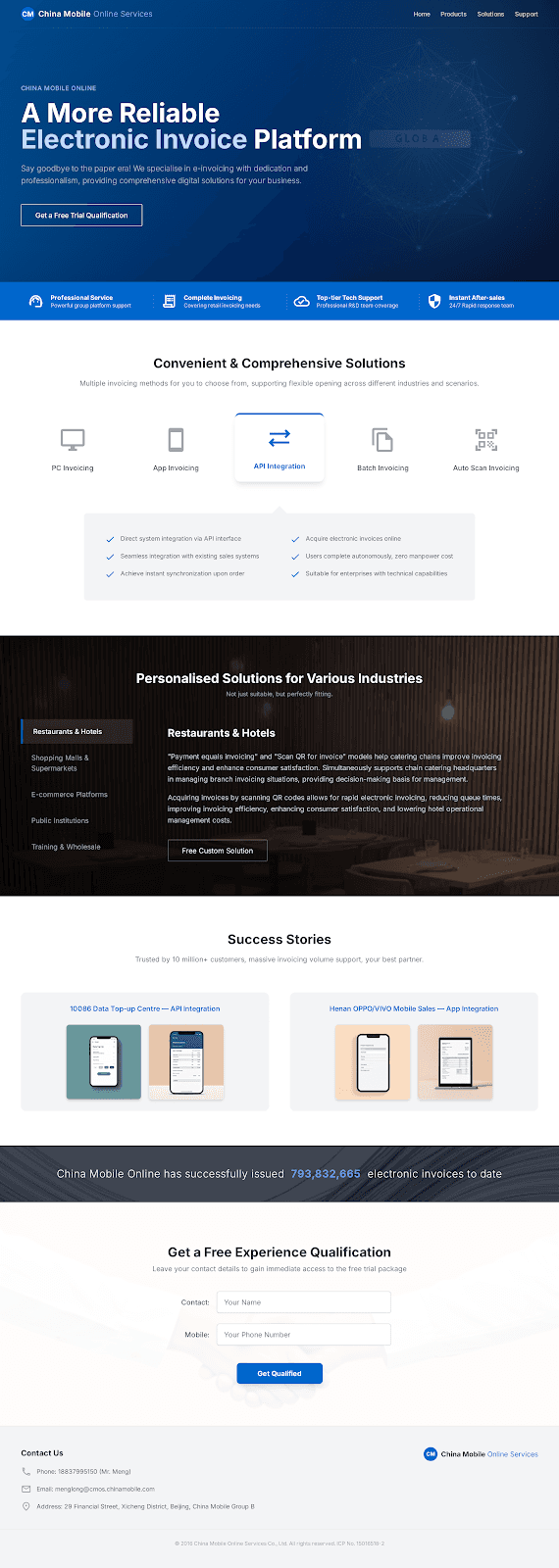 The company's existing electronic invoice service functioned purely via API interfaces, relying heavily on operations staff to manually and verbally pitch capabilities to partner branches. To scale the service to external B2B clients and reduce manual communication overhead, a professional, centralised digital storefront was required.
